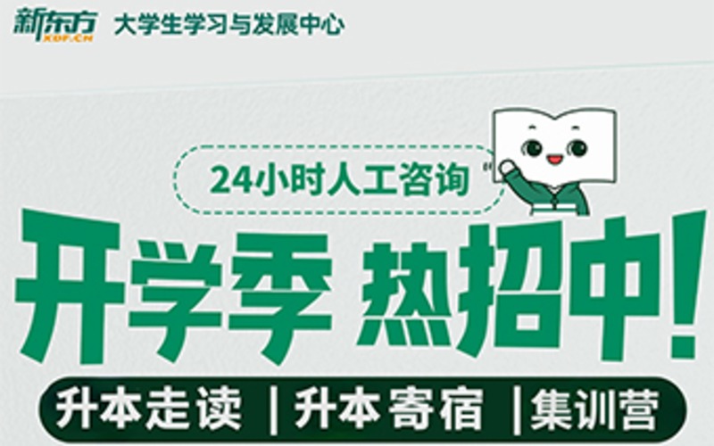 新東方大學(xué)生學(xué)習(xí)與發(fā)展中心,是新東方教育科技集團(tuán)旗下的大學(xué)教育品牌,依托于新東方近30年的教學(xué)沉淀和豐富的教育資源,為中國(guó)3800多萬(wàn)大學(xué)生提供系統(tǒng)化學(xué)習(xí)解決方案和就業(yè)指導(dǎo)。總部位于北京,遍及全國(guó)27座城市,建立12個(gè)學(xué)習(xí)與發(fā)展中心。新東方大學(xué)生學(xué)習(xí)與發(fā)展中心 教學(xué)與服務(wù)涵蓋專升本、四六級(jí)、專四專八、考研、考博、教資、財(cái)會(huì)、等各類考試。堅(jiān)持知行合一,學(xué)以致用,通過(guò)專業(yè)的職業(yè)規(guī)劃和職業(yè)測(cè)評(píng),豐富的實(shí)習(xí)產(chǎn)品和就業(yè)指導(dǎo),幫助大學(xué)生找準(zhǔn)自己的職業(yè)定位,提升未來(lái)的職業(yè)競(jìng)爭(zhēng)力。當(dāng)代青年是同時(shí)代共同前進(jìn)的一代。堅(jiān)持踐行新東方“終身學(xué)習(xí)、全球視野、獨(dú)立人格、社會(huì)責(zé)任”的核心教育理念,引領(lǐng)中國(guó)大學(xué)生在學(xué)好知識(shí)、增長(zhǎng)才干的同時(shí),樹立積極向上的人生觀和價(jià)值觀,努力為中華民族偉大復(fù)興輸送更多志存高遠(yuǎn)、腳踏實(shí)地,具備全球視野與國(guó)際競(jìng)爭(zhēng)力的優(yōu)秀人才。
