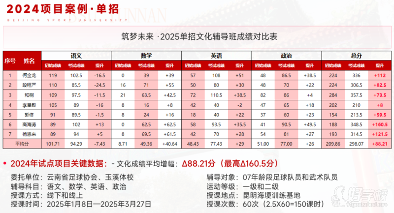 文化輔導(dǎo):依托筑夢未來·文化教研組師資,為特訓(xùn)班提供專業(yè)的文化課輔導(dǎo),調(diào)動(dòng)學(xué)習(xí)積極性,學(xué)訓(xùn)結(jié)合促體文成績雙突破。