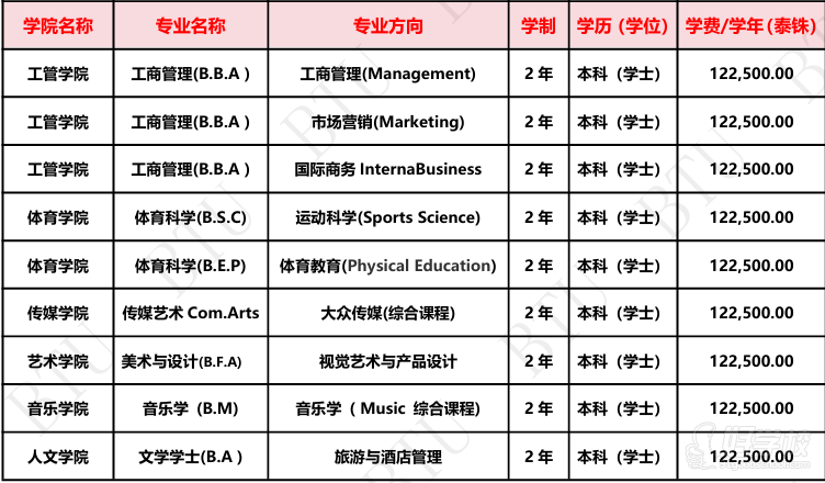 2、國際留學(xué)生管理雜費(fèi)2年共29萬泰銖,第一學(xué)年入學(xué)前需一次性付清。
