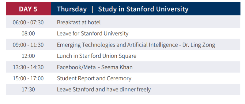 項目課程以美國校園學習和國內(nèi)研究學習為主,12個月內(nèi)結(jié)束項目,共8個模塊。在校園學習一周時間,國內(nèi)安排兩門選修課程學習。研究期間會安排學生集中到美國三校學習,課程安排加州州立大學、斯坦福大學、加州伯克利大學指導教授聯(lián)合教學,對學生進行研究方法指導,并安排教授主講課程。在出國前完成課程,進入論文研究和發(fā)表階段。課程完成后,學生須到美國學習一周,參加校方舉辦的畢業(yè)典禮。
