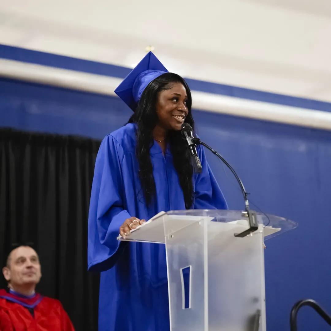 在演講中,Believe同學(xué)真摯地講述了自己的成長經(jīng)歷與未來藍(lán)圖。她的發(fā)言充滿激情與力量,展現(xiàn)出年輕一代的自信與擔(dān)當(dāng),也讓在場的每一位畢業(yè)生深深感受到:皇冠中學(xué)為學(xué)生塑造了堅(jiān)強(qiáng)的品格,并用愛、恒久的期望與關(guān)懷托舉每一位孩子的個(gè)人成長,是這些支持我們的力量——老師、家人、朋友,塑造了我們未來的無限可能。